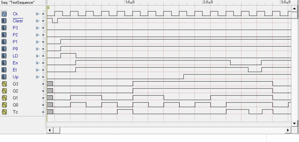 уровень и на входе *LD* высокий уровень, входы *P3…P*0 копируются на