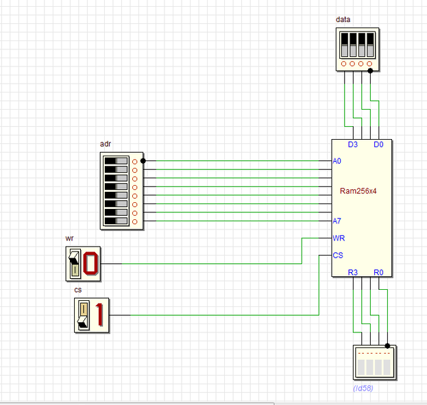 Изучите поведение микросхемы ОЗУ , представленной ниже, используя программу d-DcS.
