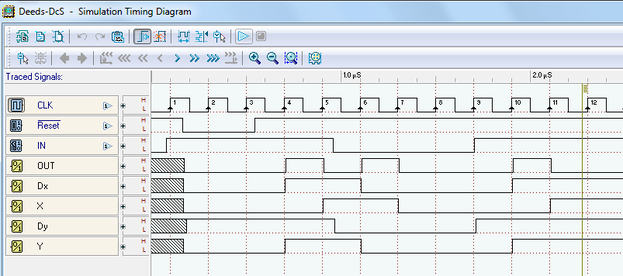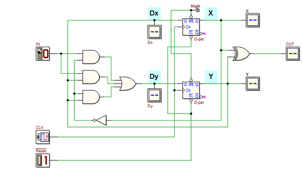 Синтезируйте схему,описанную картой карно и напишите булевские уравнения ( в логическом базисе И,ИЛИ,НЕ) для Dx,Dy. Верифицируйте поведение автомата на соответствие поведению исходной схемы.