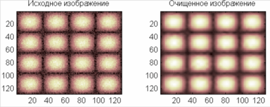 На рис. 3.6 приведены исходное (слева) и очищенное от шума (справа) изображения, полученные при исполнении программы.