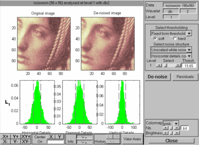 Ниже приведена упрощенная программная реализация, в которой использованы функции порога двумерного вейвлета (