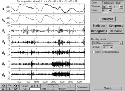 Сведения о большинстве вейвлетов и различных вейвлет-преобразованиях можно получить, работая с графическим интерфейсом пользователя GUI (Graphic User Interfice). Здесь же приведено много демонстрационных примеров по вейвлет-анализу (декомпозиции), вейвлет-синтезу (реконструкции сигналов, их очистке от шумов и сжатию (компрессии).