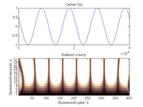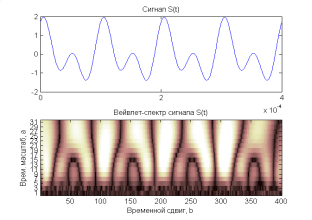 Итак, очевидно, что спектр рассматриваемого сигнала в отличие от гармонического (см. пример 1.1) содержит еще высокочастотный компонент в области малых значений временного масштаба