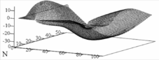 выведен на рис. 1.7 в виде поверхности в трехмерном пространстве, а на рис. 1.8 в виде изоуровней на плоскости (a,b).