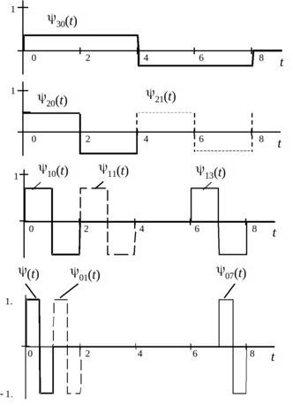 Рис. 2.1 на примере вейвлета Хаара иллюстрирует дискретизацию