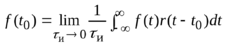 -функцию можно рассматривать, как предел последовательности все более коротких прямоугольных импульсов со все большей амплитудой, так, что площадь импульсов постоянна и равна 1. Тогда нестрого можно считать