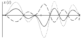 Вторая операция, часто применяемая на практике – умножение на некоторый постоянный коэффициент. Множитель может быть больше единицы, что соответствует усилению сигнала, или меньше единицы, тогда имеет место ослабление. Ослабление может быть естественным (вследствие затухания сигнала в линии передачи или рассеяния энергии в пространстве) или преднамеренным, выполняемым, например, с помощью устройств, называемых аттенюаторами. Усиление выполняется при помощи усилителей. Множитель может быть и отрицательным, тогда меняется полярность сигнала, а соответствующее устройство называют инвертирующим усилителем, или инвертором. На рис. 9 сплошной линией показан сигнал, пунктиром тот же сигнал, усиленный вдвое, а штриховой линией – инвертированный сигнал.