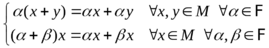 Выполняются следующие аксиомы умножения на скаляр: