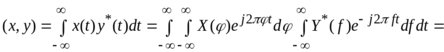 , выразив сигналы через спектральные плотности при помощи обратного преобразования Фурье: