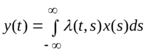 отличается тем, что множество компонент каждого его вектора несчетно, поэтому дискретные индексы заменяются непрерывными переменными, а место матрицы занимает функция двух переменных, называемая ядром оператора. Тогда действие линейного оператора на сигнал
