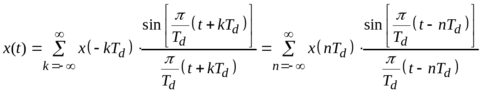 Отметим, что такая интерполирующая цепь, строго говоря, нереализуема, так как её импульсная характеристика имеет бесконечно большую протяженность в область отрицательных времен. Однако можно построить цепь, сколь угодно точно её аппроксимирующую, правда, при этом восстановленный сигнал будет получаться с задержкой (тем большей, чем выше точность аппроксимации).