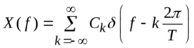 через его обратное преобразование Фурье, подставляя в качестве спектральной плотности её представление рядом Фурье