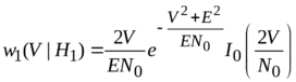 – условные плотности распределения вероятности огибающей корреляционного интеграла при условии гипотез о передаче сигналов