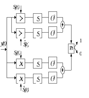 То же правило можно реализовать с использованием согласованных фильтров по схеме рис. 15. Здесь вычисление величин