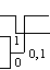 Два нижних символа соединяются скобкой, из них верхнему приписывается символ 0, нижнему 1 (или наоборот).