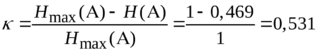 =0,469; средняя длина кодового слова равна 1, избыточность источника и избыточность кода одинаковы и равны