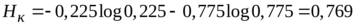 Энтропия кода находится как энтропия случайной величины, принимающей два значения (0 и 1) с вероятностями 0,225 и 0,775: