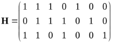 и проверочная матрица содержит в качестве столбцов все возможные комбинации нулей и единиц, исключая нулевой вектор.
