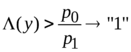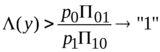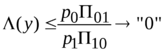 , вычисляется значение отношения правдоподобия, которое сравнивается с порогом; порог равен