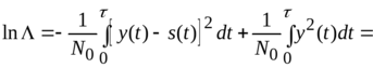 Поскольку логарифм является монотонной функцией, правило обнаружения сигнала известной формы на фоне гауссовского квазибелого шума, оптимальное в смысле критерия максимального правдоподобия, основано на сравнении с нулевым порогом величины