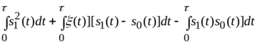 Ошибки при приеме состоят в том, что при передаче первого сигнала принимается решение о приеме второго и наоборот. Учитывая, что гауссово распределение симметрично и априорные вероятности равны, легко видеть, что суммарная (средняя) вероятность ошибки равна любой из условных вероятностей ошибок (убедитесь в этом!).