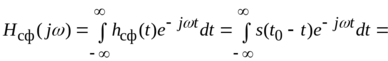 Таким образом, КЧХ согласованного фильтра является комплексно-сопряженной функцией по отношению к спектральной плотности ожидаемого сигнала, умноженной на фазовый множитель, соответствующий задержке на