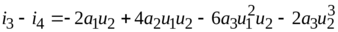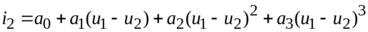 а ВАХ диода имеет вид кубического полинома, запишем токи диодов