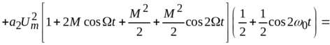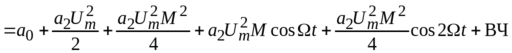 где символом ВЧ для краткости обозначены высокочастотные составляющие, подавляемые фильтром НЧ. Из полученного выражения видно, что помимо постоянной составляющей и полезного сигнала (в данном случае это колебание с частотой