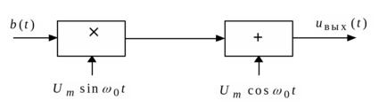 – амплитуды переменной составляющей выходного напряжения и несущего колебания соответственно. В данном случае