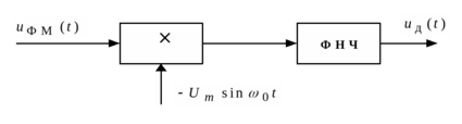 Детектирование ЧМ-сигналов можно выполнить при помощи фазового детектора, после чего выходной сигнал следует продифференцировать. Второй вариант заключается в преобразовании частотной модуляции в фазовую. Для этого ЧМ-сигнал подается на цепь с линейной ФЧХ. Роль такой цепи может выполнить резонансный усилитель, настроенный на среднюю частоту ЧМ-сигнала, если добротность колебательного контура не слишком высока, так чтобы изменения мгновенной частоты ЧМ-колебания происходили в пределах линейного участка ФЧХ. Выходной сигнал оказывается модулированным как по частоте, так и по фазе, поэтому для получения правильного результата в качестве опорного колебания нужно использовать входной ЧМ-сигнал. Кроме того, при прохождении контура сигнал приобретает ещё паразитную амплитудную модуляцию, которую устраняют путем жесткого амплитудного ограничения сигнала (до фазового детектрирования).