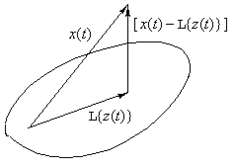 Из геометрических соображений ясно, что дисперсия ошибки оценивания (норма ошибки) будет минимальна в том случае, если вектор ошибки будет ортогонален этому подпространству (ошибка некоррелирована с наблюдаемым сигналом во все моменты времени), отсюда условие оптимальности оператора
