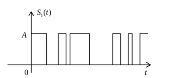 Изобразите примерный вид плотности распределения вероятности случайного процесса, реализации которого имеют вид последовательностей импульсов с одинаковой амплитудой и случайной длительностью, Рис. 7.