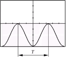) после выполнения операций 1...5 предыдущего раздела переместить ручкой « » изображение так, чтобы точки, между которыми измеряется время (например, соседние максимумы периодического сигнала), находились на горизонтальной градуированной линии (рис. 1.3);