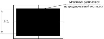 ) установить ручку « » вертикального перемещения задействованного канала так, чтобы минимальный уровень сигнала совпадал с одной из нижних линий, а максимальный находится в пределах экрана. Ручкой « » горизонтального перемещения сместить изображение так, чтобы один из верхних максимумов находился на градуированной вертикали (рис. 1.2);