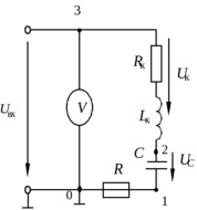 3 В и измерить комбинированным цифровым прибором напряжения на катушке, конденсаторе и резисторе.