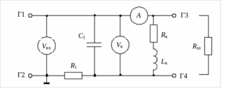 Схема лабораторной установки приведена в описании лабораторной работы № 8. Питание контура производится от генератора синусоидальных сигналов, необходимые измерения осуществляются электронным вольтметром, миллиамперметром в ветви катушки и двухлучевым осциллографом.