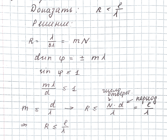 Докажите, что разрешающая способность дифракционной решетки не может превысить значения