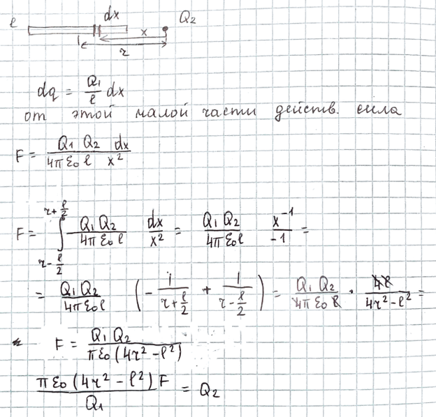 находящийся на продолжении той же нити на расстоянии r = 6 см от ее середины. Определить значение точечного заряда