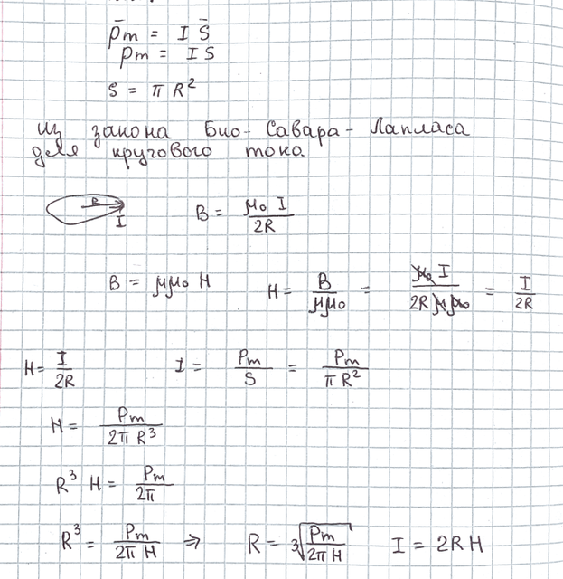 Напряженность H магнитного поля в центре кругового витка с магнитным моментом