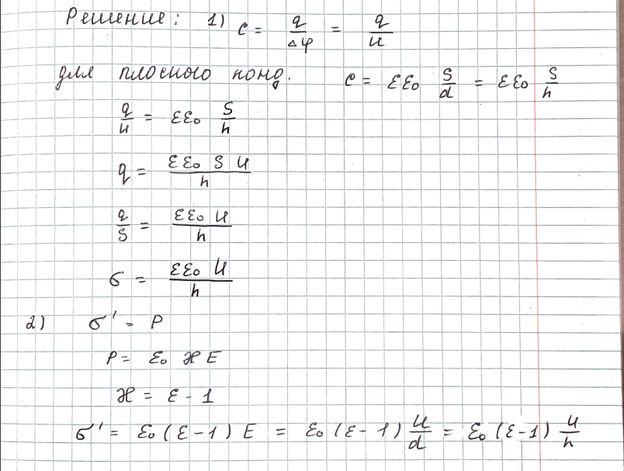 Между пластинами плоского конденсатора, заряженного до напряжения U=400 В, помещена диэлектрическая пластина толщиной h=1,2 см и диэлектрической проницаемостью