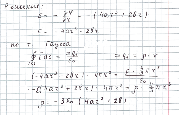 , где a, b и c постоянные. Найти распределение объёмного заряда (r) внутри шара.