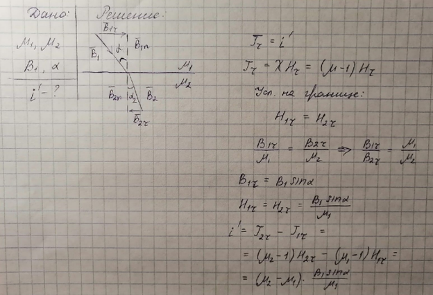 составляет угол с нормалью к поверхности раздела. Найти поверхностную плотность молекулярных токов