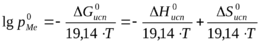 Для чистых металлов: Kp = р0Мe. Подставив это выражение, т.е. упругость паров чистого металла, в уравнение (8.46) т.е. уравнение Вант-Гоффа для определения Kp); получим: