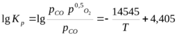Парциальное давление кислорода в реакции (9.10) зависит от температуры, давления и соотношения концентраций СО2 и СО: