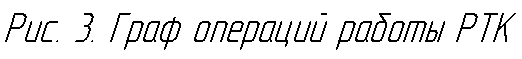 На рис. 3 приведен граф, отображающий работу системы по загрузке детали на стол резьбонарезного станка, обработке детали на станке, выгрузке детали со стола резьбонарезного станка. Перечень сигналов дан в табл. 1, содержание операций, соответствующее позициям графа, указано в табл. 3.
