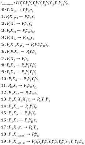 Согласно графу операций работы системы секвенциальные выражения для каждого перехода t данной системы будут иметь вид:
