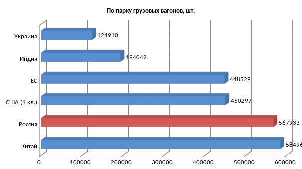 Российские железные дороги, наряду с магистралями США и Китая, входят в число крупнейших железнодорожных систем мира (рис. 1).