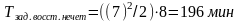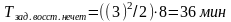 Время задержки от пропуска поездов сразу после ремонта со скоростью 45 км/час (0.75 км/мин) по отремонтированному пути: