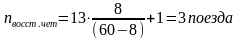 Для определения задержек после «окна» во время восстановления движения определим, через какое количество поездов произойдет восстановление движения: