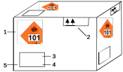 Рисунок 7.1 Место расположения маркировки, характеризующей транспортную опасность груза (1-знак опасности; 2-манипуляционные знаки по ГОСТ14192-96; 3 - номер ООН;